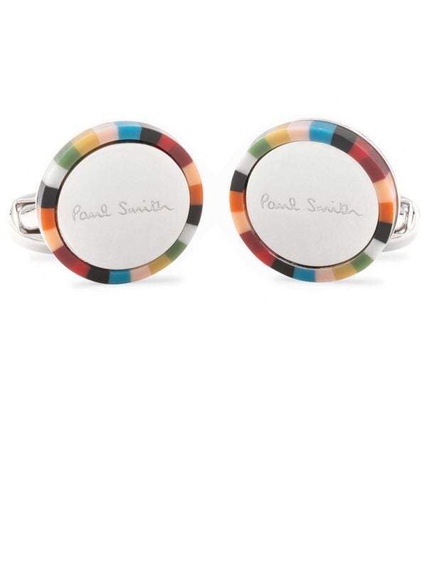 The Paul Smith Circle cufflinks are a sleek and sophisticated accessory designed to elevate any formal outfit. Crafted from copper and zinc with a polished enamel finish, they feature the signature Paul Smith logo and a distinctive Signature Stripe outer pattern for a subtle yet stylish touch.
