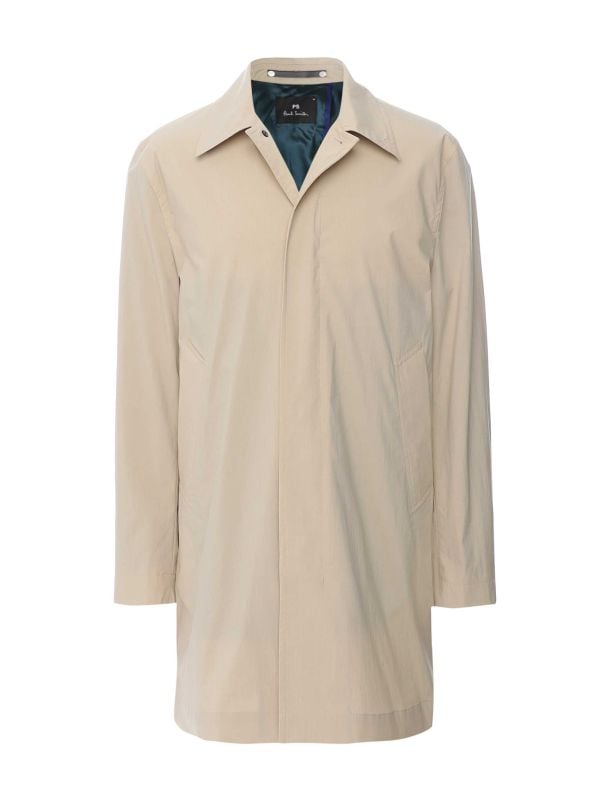 The Paul Smith overcoat is a refined outerwear piece designed for effortless versatility. Crafted from a cotton blend with stretch, it offers a lightweight feel and exceptional comfort, making it ideal for transitional weather. The collared neckline and concealed button closure create a sleek, streamlined silhouette, while the side pockets provide practical storage.