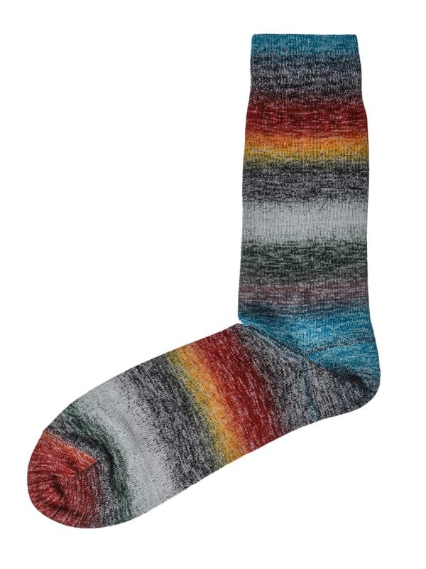 Crafted from a blend of cotton with just the right touch of stretch, the Paul Smith ombre Signature Stripe socks offer both comfort and style. Boasting the iconic Signature Stripe in a mesmerising ombre pattern, these socks add a pop of personality to any ensemble.