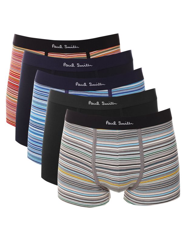 The Paul Smith boxer briefs 5-pack embodies a perfect blend of comfort, style, and sustainability. Crafted from premium organic cotton with added stretch, these boxer briefs offer a luxurious feel against the skin while providing flexibility for everyday wear. The set includes five pairs, featuring a harmonious combination of two plain designs and three adorned with the iconic Signature Stripe pattern, showcasing Paul Smith's distinctive aesthetic.