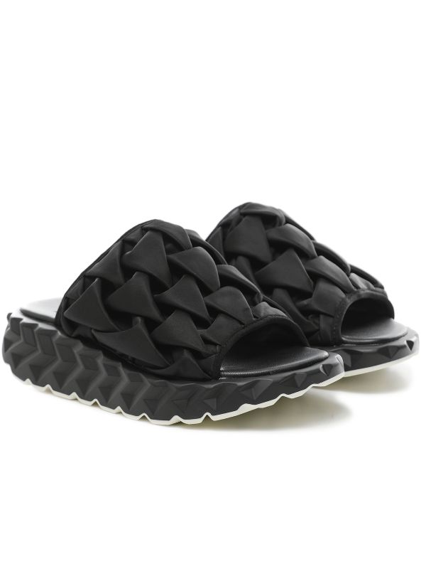 Looking for a footwear update? Discover the Jabara Amor Sliders by 4CCCCEES. These bold and chunky 4CCCCEES sliders are an open-toe design with a wide, lattice fabric strap. Complete with a ridged flatform sole, these pretty sliders are perfect for adding texture to your new season looks.