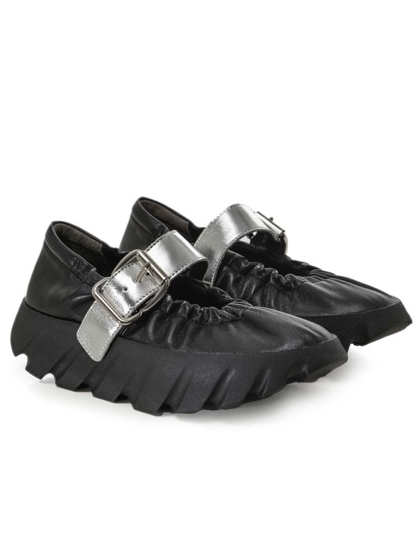 Reform your footwear collection with the statement-making Tura Cove Shoes by 4CCCCEES. Crafted from leather, these 4CCCCEES shoes feature an elasticated ruched design with a contrast silver strap with buckle fastening. Inspired by ballerina shoes and transformed with a foam rubber platform sole, they're a standout style that will capture attention whatever your outfit.
