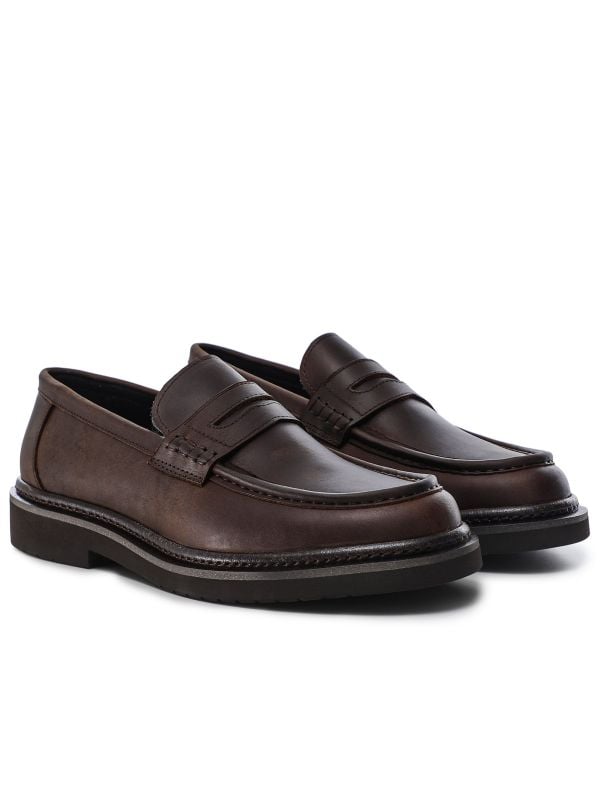 The Ahler penny loafers from the TGA by Ahler collection are a modern take on a timeless staple. Crafted from durable crazy horse leather uppers, they feature the classic penny strap and moccasin toe for a laid-back yet refined look.