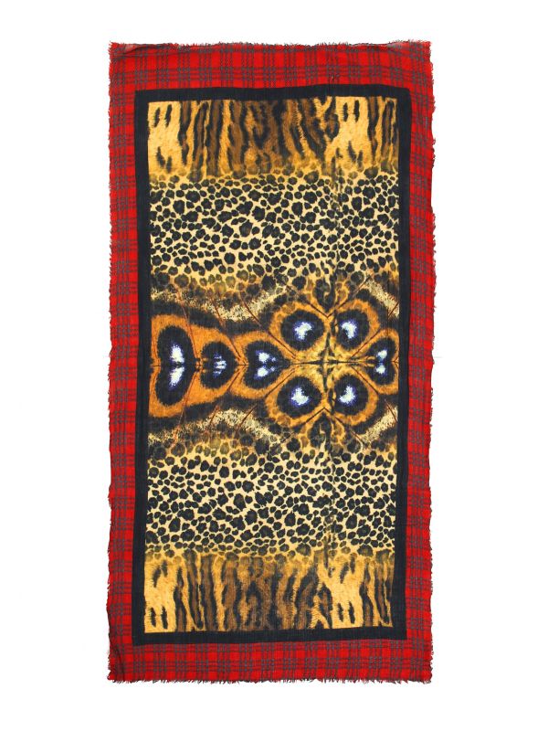 Animal Print Tartan Trim Scarf