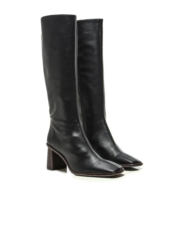 The East corn boots are taken from the ALOHAS Second Life vegan capsule collection. These innovative, sustainably-crafted boots are made from recycled polyester and biopolyols, obtained from corn. The boots feature a square toe, side zipper and a block heel crafted from recycled materials.