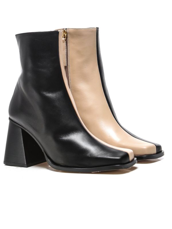 The ALOHAS South bicolour boots are a statement day-to-night shoe, expertly crafted in Spain from high-quality leather. These beautiful boots have a distinctive two-tone design and are complete with a side zip, block heel and stylish square toe.