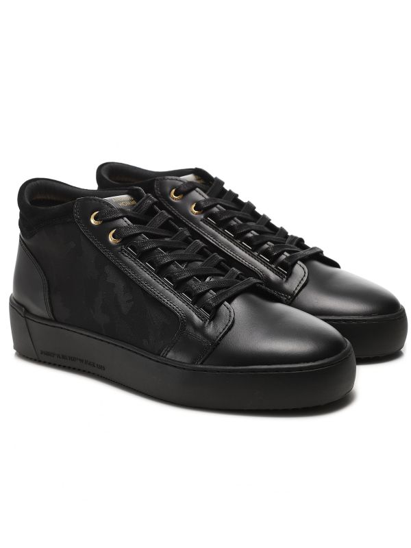 The Android Homme camo Propulsion Mid sneakers are the perfect investment for the sneaker connoisseur. Showcasing multi-aspect uppers including nappa leather, suede and nylon camouflage sides, the mid-top sneakers exude contemporary, urban style. Featuring a five D-ring and two eyelet lace-up, cupsole and a tooth tread for exceptional grip, whilst the monochromatic black colourway exudes a sleek and dynamic aesthetic.