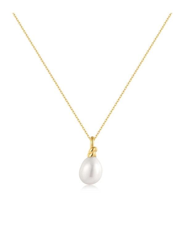 The Ania Haie freshwater pearl pendant necklace is a stunning addition to any jewellery collection, beautifully crafted from 925 sterling silver and adorned with luxurious 14kt gold plating. Its unique twist design showcases a delicate freshwater pearl, adding a touch of elegance and sophistication to your outfit.