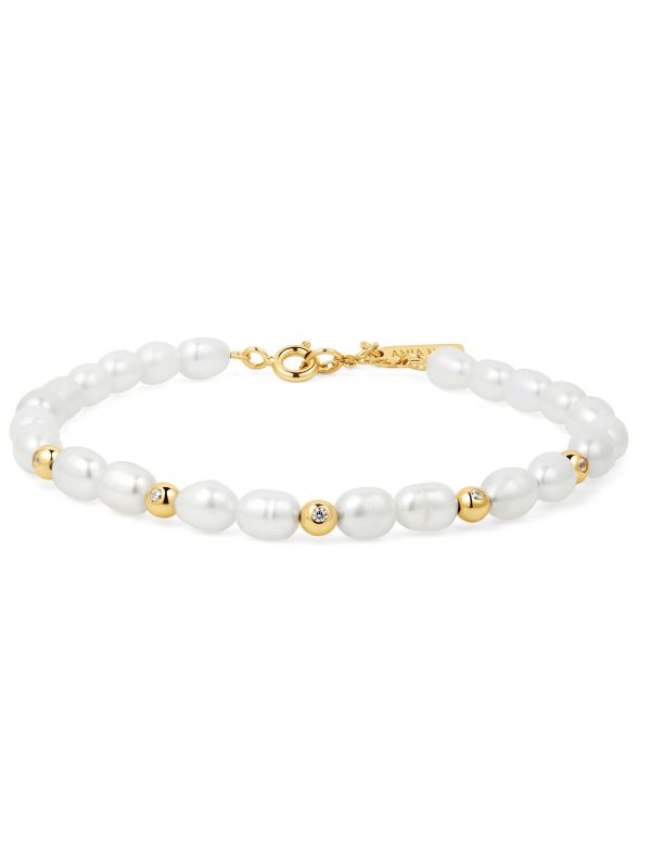 Elevate your accessory game with the Ania Haie bezel set bracelet, a stunning blend of elegance and modern design. Crafted from high-quality 925 sterling silver and adorned with luxurious 14kt gold plating, this bracelet features a captivating mix of sparkling cubic zirconia and lustrous pearls, creating a chic yet timeless aesthetic.