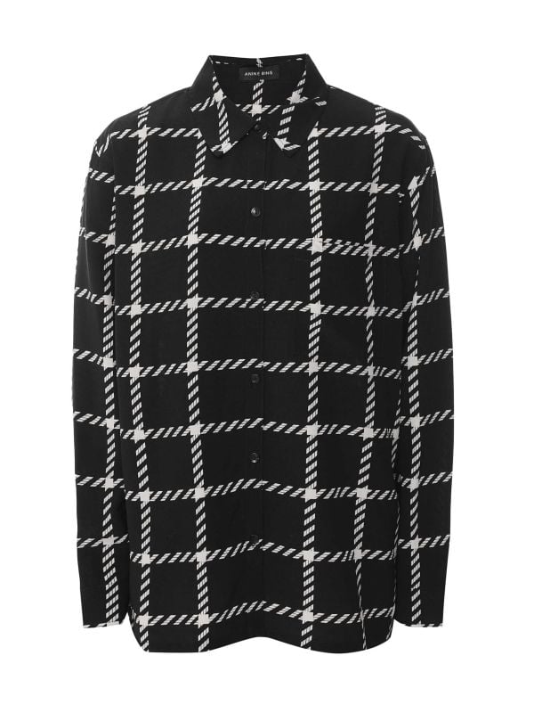 Make the Anine Bing Aspen shirt a staple in your wardrobe. The pyjama-style button-up shirt features a black and white oversized plaid pattern and a pointed collar. Lightweight and suitable for transitional layering, you can wear it from the office to town for a smart and sophisticated look.