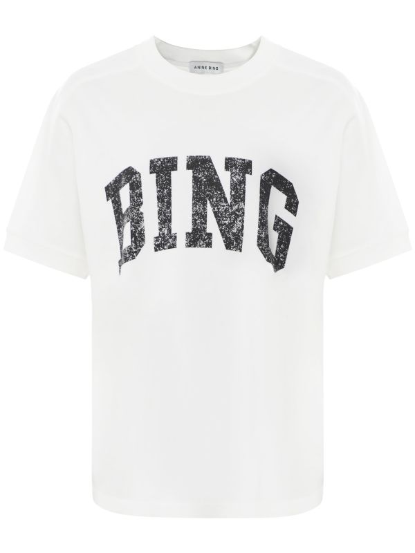 Uplift your t-shirt collection with the Jaylin Tee from Anine Bing. The Jaylin is a casual t-shirt crafted from 100% cotton jersey with a slight stretch. This retro-inspired Anine Bing t-shirt has a round neckline, short raglan sleeves, ribbed trims and a large, contrast black graphic on the front that reads BING. With its relaxed, boxy cut, this tee is an effortless piece that, while casual, will elevate any look.