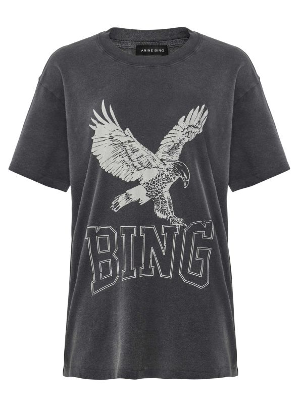 The Anine Bing Lili Retro Eagle t-shirt is a chic and stylish wardrobe staple, crafted from premium organic cotton that gives it a luxurious, soft feel. The washed jersey fabric adds a slightly faded effect, enhancing its vintage-inspired look. Featuring a classic crew neck and short sleeves, this tee is adorned with a bold printed artwork of a soaring eagle—giving it an edgy yet sophisticated appeal.