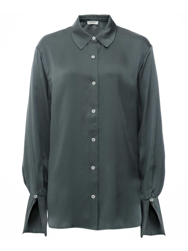 The Monica Shirt is a luxurious shirt from Anine Bing, crafted from 100% silk. This lightweight shirt has a classic collar, button closure, a curved hem and long sleeves with elongated cuffs and a single button. The shirt has a relaxed fit and sits elegantly whatever the outfit, whether paired with the matching Bar Skirt or a pair of simple black trousers.