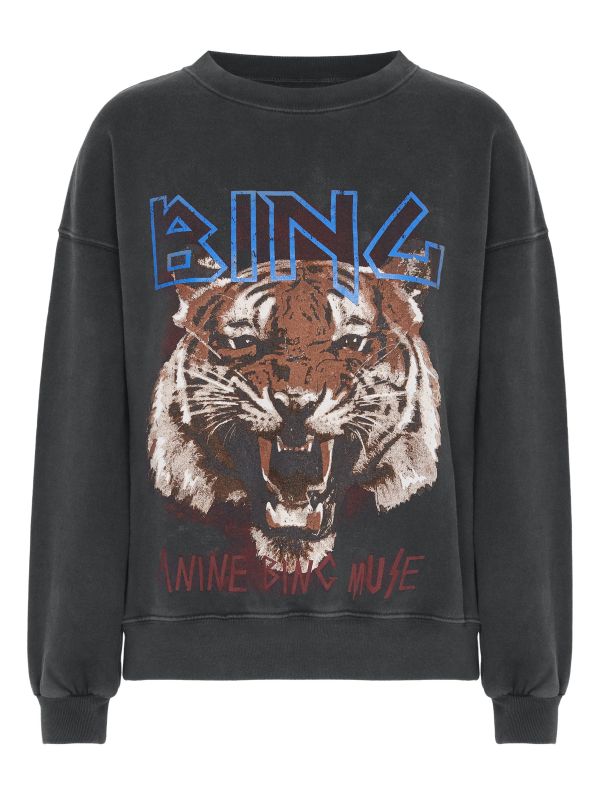 Fall in love with the Anine Bing tiger sweatshirt, your new favourite for everyday wear. Crafted from soft stretch cotton in washed black and designed with an oversized silhouette, this boxy sweatshirt features a crew neck, long sleeves and ribbed trims. The front features a tiger print and graphic lettering, inspired by retro band merch for a cool, grungy look.