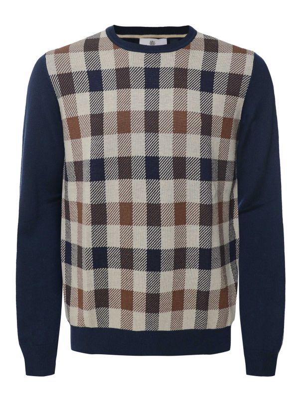 The Aquascutum Macro Check jumper brings a fresh twist to a classic knit, crafted in soft knitted cotton for all-day comfort. Designed with a crew neck and a bold Macro check pattern across the body, it’s balanced by plain sleeves and trims for a clean, wearable look.
