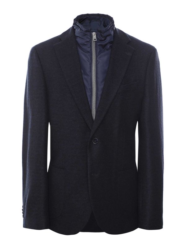 The Baldessarini bib blazer, crafted from a luxurious virgin wool blend, is a refined choice for the discerning gentleman. This single-breasted blazer showcases timeless elegance with its notch lapels and a classic two-button closure. A standout feature is its removable zip bib insert, which adds an extra layer of versatility and warmth, making it suitable for both formal and semi-formal occasions.