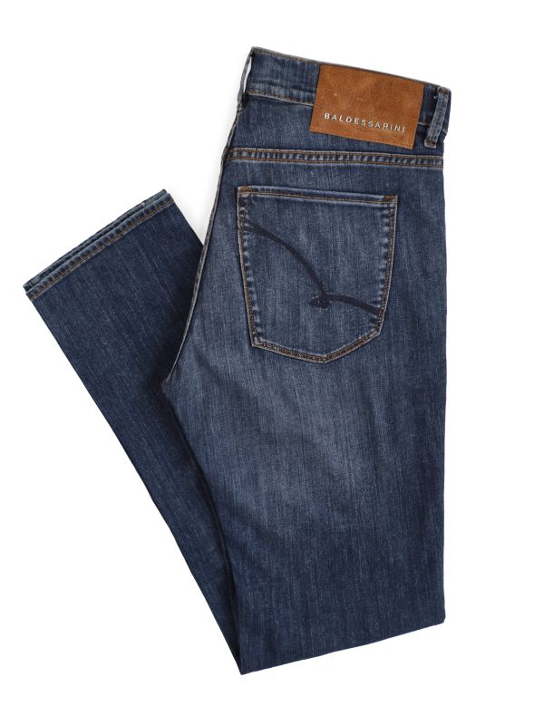 The Baldessarini Classic Jean is crafted from a cotton-blend with stretch for ease of movement and everyday comfort. A five-pocket cut with metal rivet reinforcement and belt loops, it features tonal stitching on the back pocket and a leather waistband patch for a considered finishing touch. Subtle fading and whiskering give the jean an authentic, worn character, while the coin pocket and secure fastenings keep it practical. They pair equally well with casual tees or smarter jackets for flexible styling.