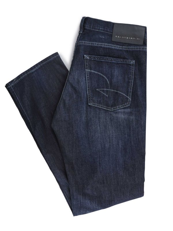 The Baldessarini Regular Denim Jeans are cut from stretch denim for easy movement and everyday wear. This jean features a five-pocket construction, visible metal rivets and belt loops, plus a branded leather patch at the back waist. A signature curved stitch on the rear pocket and subtle whiskering add character while clean seams keep the silhouette neat. Durable construction and tonal hardware complete the look, offering a versatile option that works across casual and smart-casual outfits.