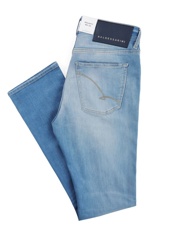 The Baldessarini Regular Fit Jeans are crafted from a breathable cotton-blend denim with a touch of elastane for ease of movement. Cut in a regular fit with a long leg, they feature classic five-pocket construction, a coin pocket, metal rivet detailing and belt loops for practical everyday wear. A branded back patch and subtle pocket stitch provide discreet detailing. Pair with Sneakers for relaxed days or with a shirt and blazer for pared-back smart-casual looks. These jeans offer reliable fit and finish for varied menswear ensembles.