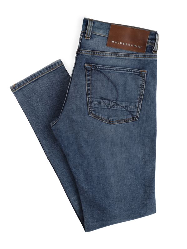 The Baldessarini Signature Jean is a polished denim option featuring five-pocket construction and reinforced rivets for durability. Tailored for everyday wear, it includes belt loops, a coin pocket and a leather waistband patch stamped with subtle branding. Subtle whiskering and tonal topstitching add texture while the cotton with elastane blend provides comfort and gentle stretch. Ideal for pairing with shirts or knitwear, these jeans offer reliable shape retention throughout the day and a practical silhouette for smart-casual dressing.