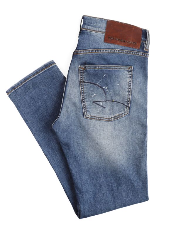 The Baldessarini Slim Fit Jean offers a contemporary slim silhouette with tapered legs and authentic worn-in character. Distressed panels, subtle abrasions and a deliberate paint-splatter effect give these five-pocket jeans a lived-in attitude, while a leather branded waistband patch and classic belt loops add finishing touches. Practical details include a coin pocket, button-and-Zipper closure and reinforced stitching.