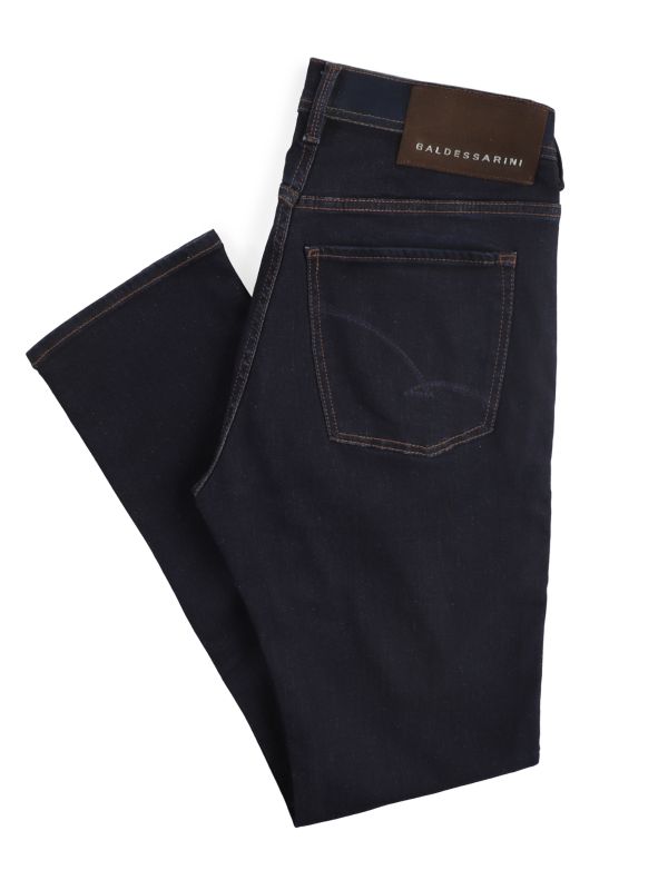 The Baldessarini Slim Jean is a considered denim design cut to a tailored slim silhouette. Constructed from a cotton-elastane blend for comfort and subtle stretch, it features a five-pocket layout, contrast topstitching, reinforced rivets and belt loops for practical wear. A branded leather waistband patch sits at the back, while clean lines and a neat finish keep the styling minimal.
