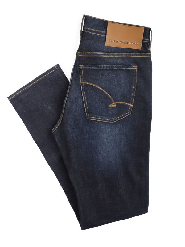 The Baldessarini Slim Jean is a tailored denim piece crafted with attention to detail. Designed with a five-pocket layout, coin pocket and riveted stress points, it features contrast topstitching and a branded leather waistband patch. The back pocket stitch adds subtle signature detailing, while the fabric composition is a cotton-elastane blend for shape retention and movement. Finished with belt loops and sturdy seams, this jean offers a neat profile that pairs easily with both casual and smarter looks.