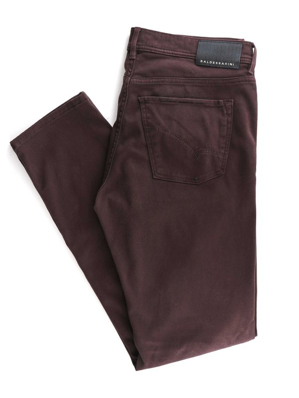 The Slim Tapered Jean combines smart tailoring with everyday practicality. The five-pocket construction and belt loops deliver classic utility, while the stitched back-pocket detail and branded patch add subtle character. A reinforced rivet at the coin pocket is visible in the close-up. Cut to a slim, tapered leg for modern wear, this pair is crafted in a cotton-polyester-elastane blend that gives structure with comfortable stretch. Discover the quality of Baldessarini paired with layered shirting or fine knitwear.