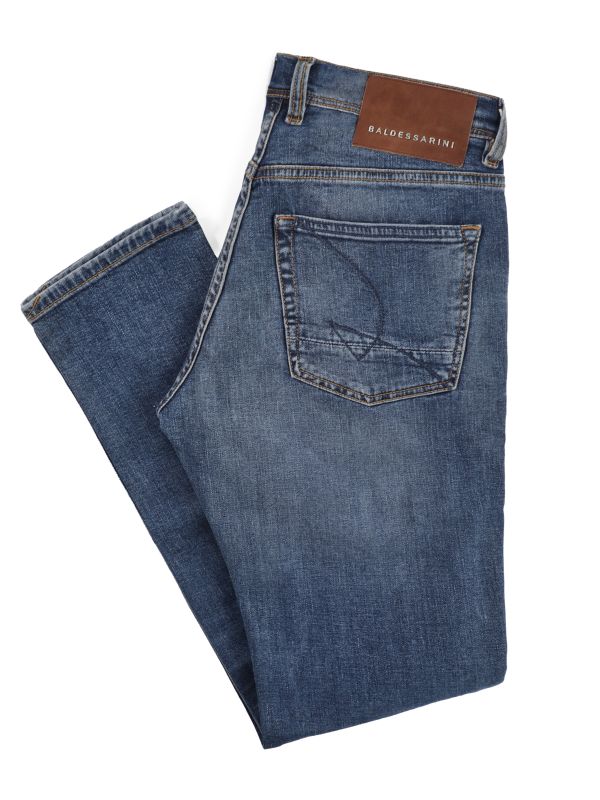 The Baldessarini Stretch Five-Pocket Jean combines timeless detailing with comfortable stretch cotton. It features a five-pocket layout with coin pocket, metal rivets and contrast topstitching, plus a branded leather waistband patch for a signature finish. Subtle fading and whiskering give a lived-in effect while reinforced stitching adds durability. Versatile enough to pair with casual shirts or knitwear, these jeans offer dependable everyday wear without compromising on comfort.