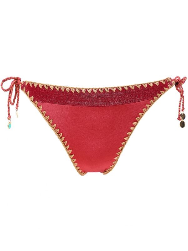 Get your wardrobe vacation-ready with the Banana Moon Blika Nazca bikini bottoms. Crafted in a soft stretch fabric, the bottoms will ensure comfort and a figure flattering silhouette. Featuring jewelled tie up sides with high leg fit, whilst the shell stitch embroidery makes for a stylish finish.