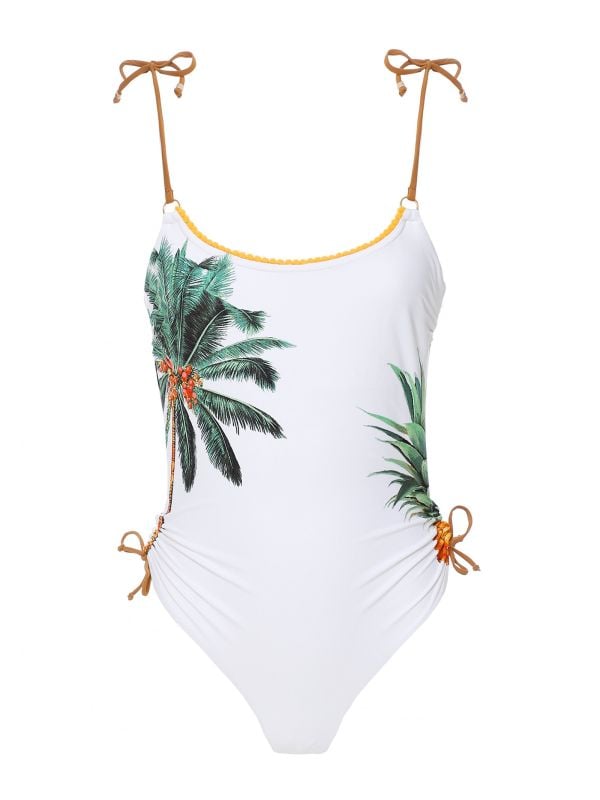 The Banana Moon Ophelia swimsuit will be sure to celebrate every woman's body. Beautifully crafted from premium materials, the one-piece swimsuit offers chest support. Featuring adjustable straps with bows and adjustable strings to the hips, the swimsuit is complete with a striking palm tree and pineapple design.