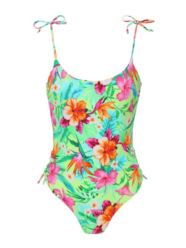 The Banana Moon Ophelia Sunleaf swimsuit is a bold yet practical must-have to take on your holidays. Crafted from luxurious fabrics, the one-piece swimsuit boasts adjustable straps and strings to the waist. With a round neck and a tropical design all over, the swimsuit is complete with a super flattering low scoop back.