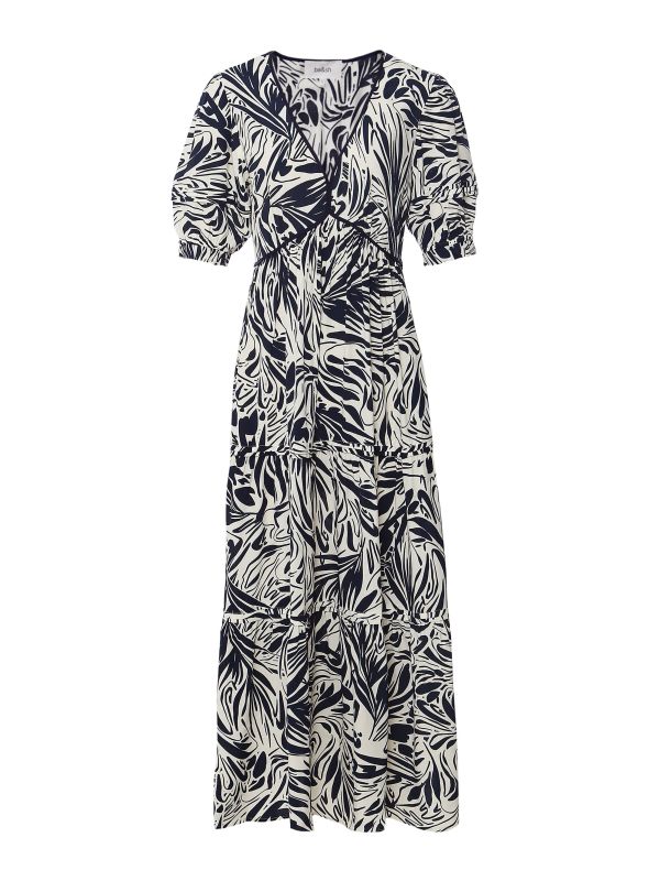 Get an elegant day-to-night look with the ba&sh Calas dress. Made from flowing viscose for a flattering drape and comfy fit, this beautiful dress is easy to team with boots and a shoulder bag. It features a stylish V-neck, short ruffled sleeves, piping details and a tiered skirt.