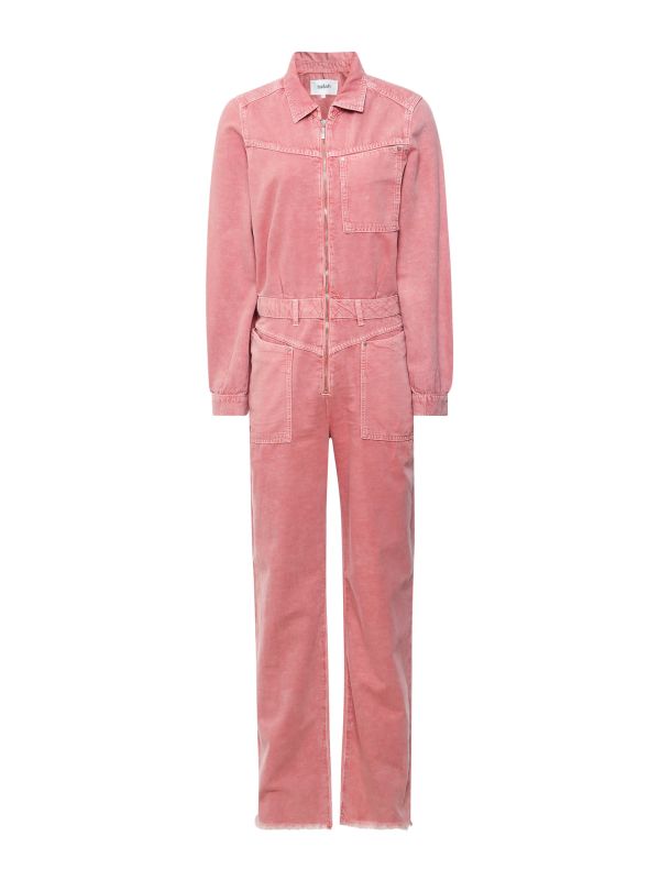 The ba&sh Dova jumpsuit is a standout piece for the new season. Inspired by workwear and 70s style, these super cool overalls are crafted in subtly washed-out denim. They feature a zip front, shirt collar, long sleeves, patch pockets with small metal rivets and slightly flared legs with a laid-back frayed finish. Wear this jumpsuit with the zip open and pair with heels for an effortlessly on-trend look.