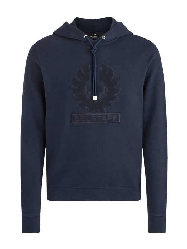 Add designer authority to your casual wear this season with the Belstaff Phoenix hoodie. Expertly crafted in premium cotton loopback, the navy sweatshirt features a drawstring hood and ribbed trims for a close fit, whilst the applique Phoenix logo to the chest showcases signature Belstaff detail.