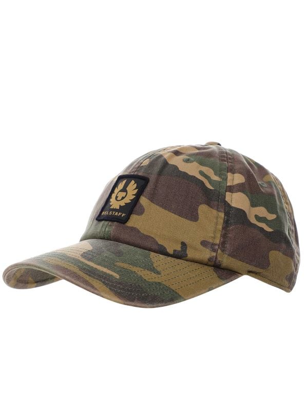 The Belstaff Camo Phoenix cap is a stylish blend of rugged functionality and urban flair. Crafted from durable cotton twill, its soft-structured six-piece construction ensures a comfortable fit. The adjustable fabric strap, complete with a branded metal cinch, allows for customisable sizing.