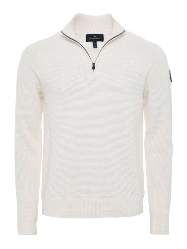 The Belstaff Tide sweater is set to add a touch of luxury into your casual apparel. Lovingly engineered in a cotton and silk blend with a pique texture, the sweater promises exceptional softness and comfort. Featuring a cosy funnel neck with half-zip fastening, raglan sleeves for superb freedom of movement and rack-stitch detailed trims. The Belstaff sweater is complete with the label's famous phoenix logo to the sleeve.