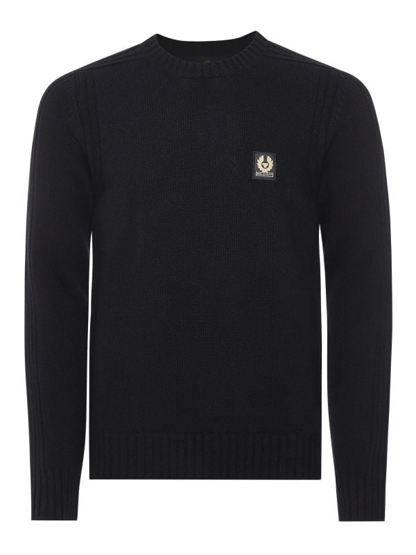 The Belstaff Watch sweater draws inspiration from classic military-issue uniform. Expertly crafted in Italy from premium lambswool, the pullover offers a luxuriously soft handle and essential warmth. Featuring a crew neck, ribbed trims and signature Phoenix badge, whilst the ribbed sleeves and side panels lend tactile texture.
