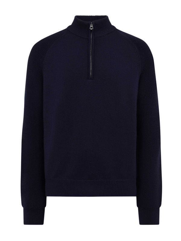 The Belstaff Aspect jumper is a refined knit designed for everyday style and comfort. Crafted from extrafine 5-gauge merino wool, it features a plain knit body with rib-knit sleeves for subtle texture and shape. A mock neck with a quarter-zip closure allows for adjustable warmth and a modern touch, while ribbed trims keep the fit neat. Finished with the iconic Phoenix sleeve badge and cut to a regular fit, this Belstaff jumper is a versatile piece for smart-casual layering.
