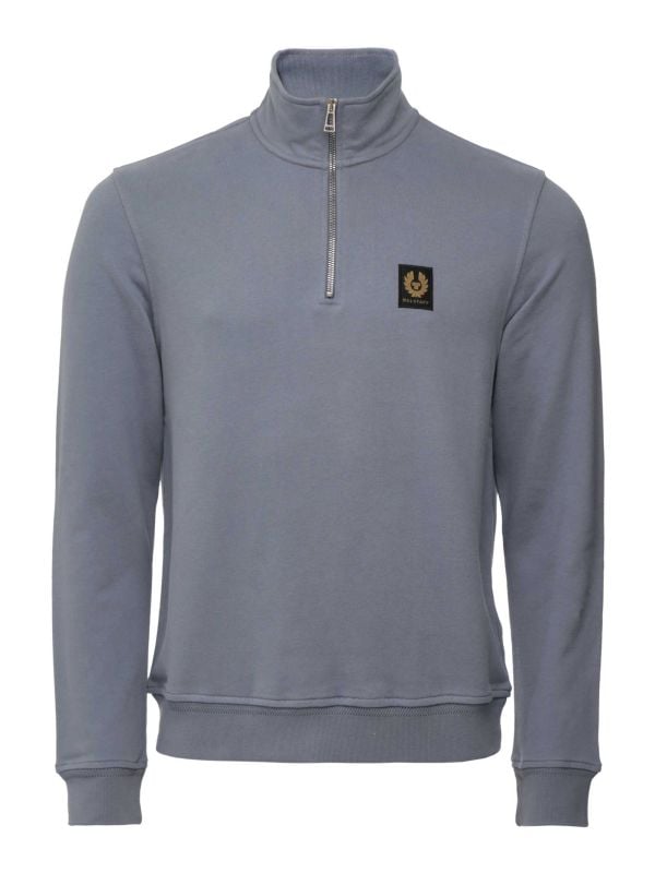 The Belstaff half-zip sweatshirt is crafted from soft cotton fleece, making it a comfortable yet durable choice for the modern man. Featuring a rugged funnel neck with a quarter zip closure, this sweatshirt is designed to offer both warmth and versatility, perfect for layering in cooler weather.
