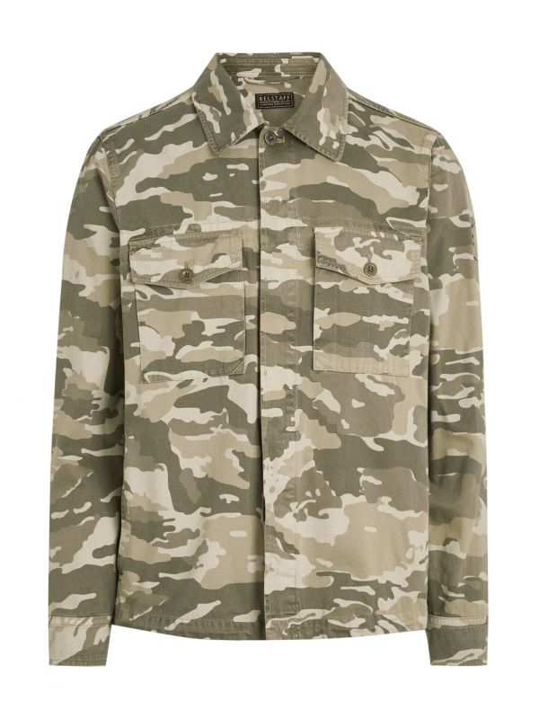 The Belstaff camo Recon overshirt is a military inspired shirt jacket ideal for warm weather layering. Expertly engineered in a lightweight sateen, the jacket has been garment dyed using different pigments that react to produce the rugged lived-in camo print. Featuring a pointed collar, concealed button placket and drawstring hem to adjust the fit, whilst the four pocket design adds handy functionality. The Belstaff jacket is complete with the label's phoenix badge to the sleeve lending iconic detail.