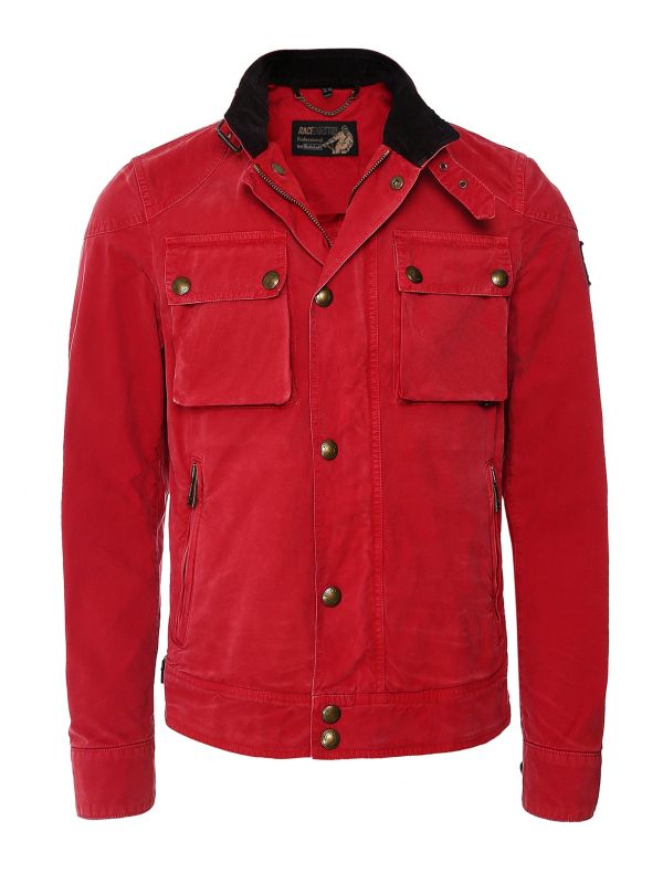 The Belstaff Vintage Racemaster jacket is a shorter alternative of the label's iconic Trialmaster style. Expertly crafted in premium cotton canvas, the jacket has been given a vintage dye finish offering a rugged lived-in quality. Featuring a press stud and concealed zip fastening, press stud chest pockets and biker-inspired buckled mandarin collar. The Belstaff jacket is complete with the label's signature phoenix badge to the sleeve for an iconic finish.