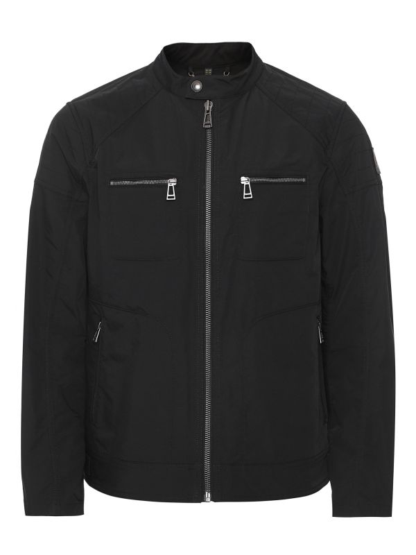 The Belstaff Weybridge jacket is a lighter re-interpretation of the label's classic café racer style. Engineered in a lightweight micro poly, the jacket has been given a water-repellent treatment making it an ideal mid-season cover up. Featuring a press stud collar, two-way zip fastening and four external zip pockets, whilst the zippered cuffs and quilted shoulder panels enhance the jacket's design inspiration.