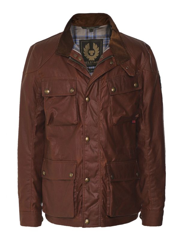 Showcase classic biker charm this season with the Belstaff Fieldmaster jacket. Crafted in a 6oz waxed cotton, the brown jacket is water and wind repellent ensuring essential protection from the elements. Featuring a press stud and concealed zip fastening, buckled mandarin collar and a classic four pocket front, whilst the corduroy lining to the collar, cuffs and hem enhance the jacket's luxurious quality.
