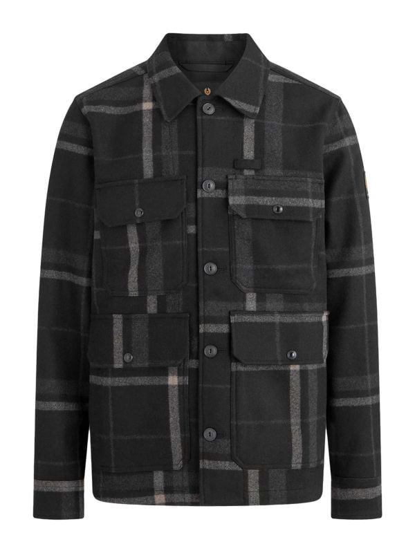 The Belstaff Forge jacket is a rugged, urban essential designed with both style and durability in mind. Made from a warm wool blend, it features a bold graphic plaid pattern that adds a touch of attitude to its classic silhouette. Practicality is at the forefront with four front pockets, offering ample storage while maintaining a streamlined look.