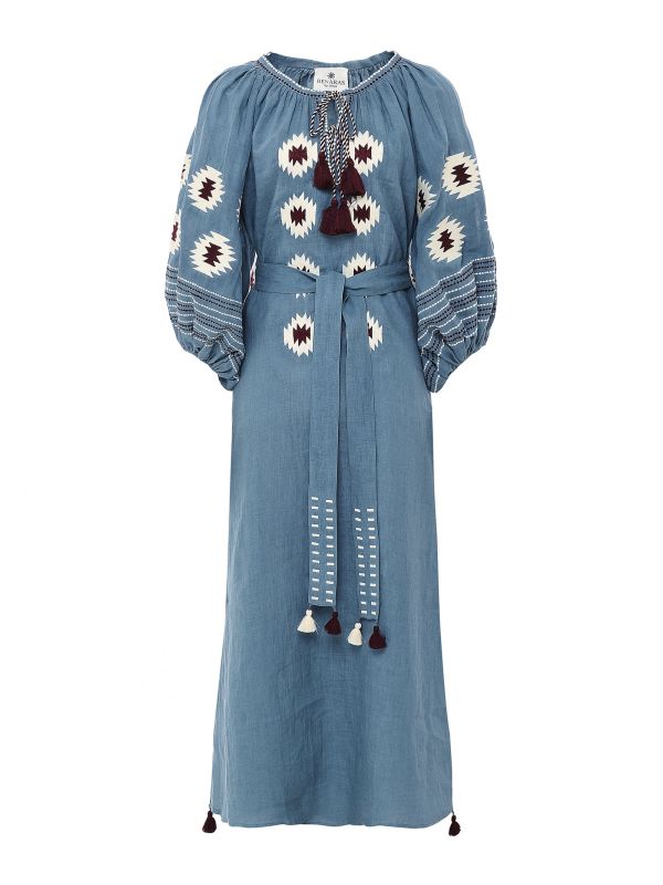 The Benaras Slyvia Veronica dress will be sure to make you feel relaxed all season. Beautifully crafted in India from pure linen, the dress boasts statement blouson sleeves. Featuring slits to the sides, two pockets and tassels throughout, the dress is complete with an embroidered design. Style yours with your go-to pair of sandals for the ultimate look.