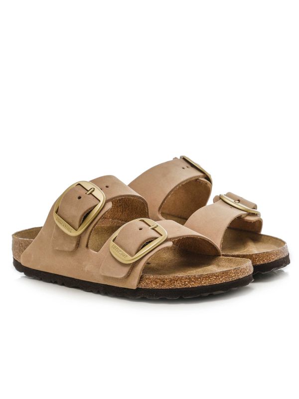 The Birkenstock Arizona Big Buckle is a cult classic now featuring two straps with larger pin buckles, delivering an elegant finish. Clean and minimalistic, these Birkenstock sandals have a rustic look that's easy to style with just about anything. They're crafted in soft nubuck leather with a suede footbed lining and EVA sole, and designed for a narrow fit.