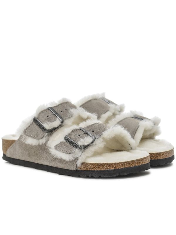 Introducing the Arizona Shearling sandals by Birkenstock for your winter wardrobe. These Birkenstock sandals are a wintry edition of the label's classic Arizona model, now featuring a fluffy shearling footbed lining and lambskin-lined straps.