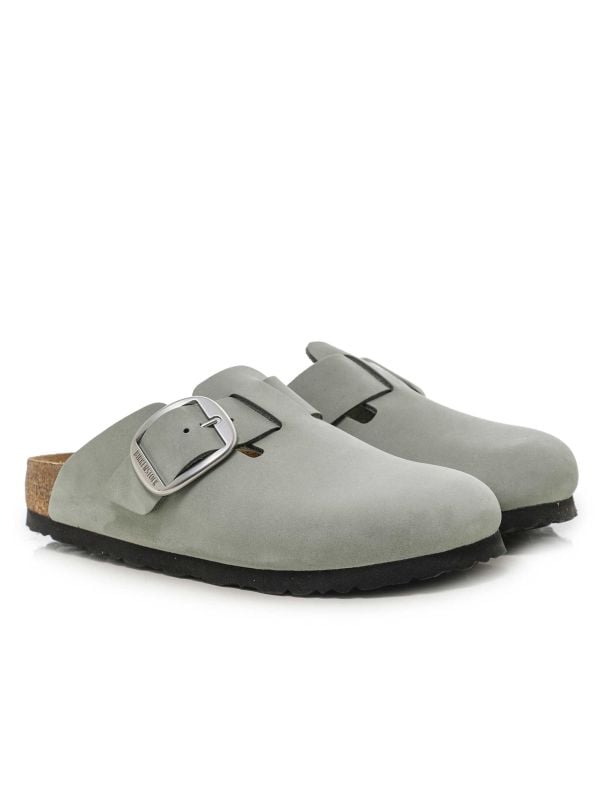 The Birkenstock Boston clog is an icon and this style now comes with a larger pin buckle, adding a statement detail to the minimalist design. These Birkenstock clogs are constructed from soft nubuck leather in spring-ready sage green. They have the signature cork-latex footbed with suede lining and an EVA sole. This pair is designed for a narrow fit.