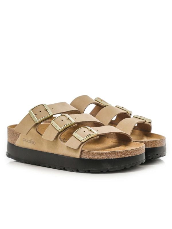 The Florida Flex Platform by Birkenstock is a chunky, comfortable sandal that offers good grip and support. Crafted from soft nubuck leather with a suede lining and EVA sole, these Birkenstock sandals are a supreme style for spring/summer. The platform flex has a wider heel section and horizontal grooves at the front, factors that deliver better flexibility and stability when walking.